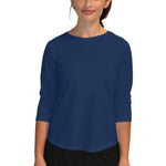Discover our super lightweight high-performance fabric that combines breathability, moisture-wicking and quick-drying properties with UVF protection. The modest banded crew neckline provides ideal coverage. Features 3/4 length sleeves and curved hemline. Athletic fit; order up a size for a more relaxed fit. Ideal for exercise, running, yoga, tennis, and golf.