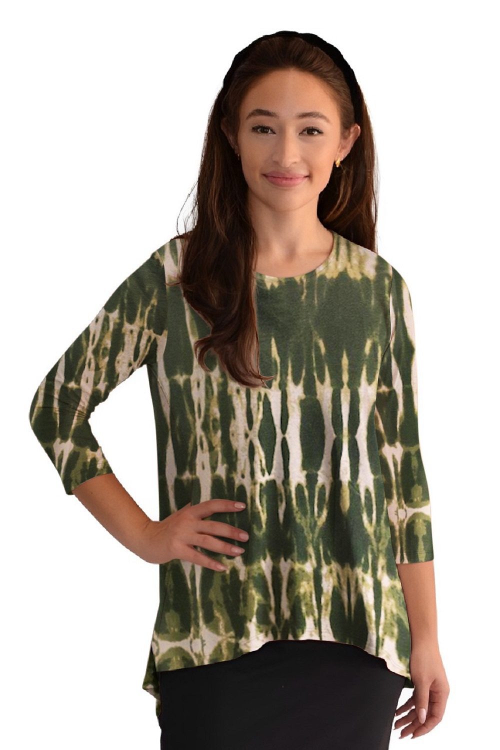 Hi-Lo Flowing 3/4 Sleeve Modest Tunic Top